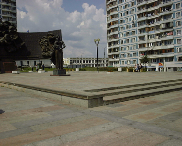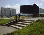 М. "Крылатское", первый вагон из центра. Левый выход из метро. 100 метров от метро в сторону автобусного парка. Памятник находится слева, напротив магазина "Перекресток".