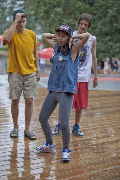 Ближе к концу квалификации пошёл дождь, контест был прерван, но уже минут через 30 погода улучшилась, влага быстро испарилась с тёплого бетона. Осадки скейтеры пережили под навесом, играя в настольный футбол и, наблюдая за ожесточённой битвой подрастающих хип-хоп танцоров, старавшихся утанцевать друг друга на лопатки. Только после подключения плеера Алишера Садыкова с отменной рокерской подборкой, они смогли остановиться.