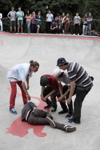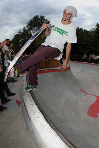 Самыми популярными трюками были такие классические радиусные элементы, как bs feeble, fs smith, fs 5-0. Также уверенно смотрелись «мистер расслабленный стиль» Давид Газиев с его плавными скольжениями и уверенными fs ollie, а также появившийся в последний момент Толя Титаев. Гена Какуша легко делал свой коронный одноногий bean plant to fakie в самой высокой части.