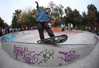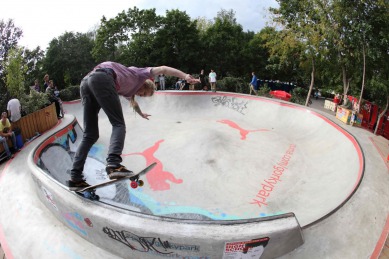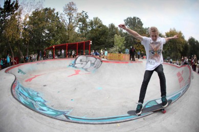 Уже на раскатке были заметны многие сильные столичные боул-райдеры – Дима Кольцов, Алишер Садыков, Оскар Калнин. Чувствовалось, что с момента открытия парка столичные скейтеры успели прикататься к споту, уровень трюков, да и скорости проездов были повыше.